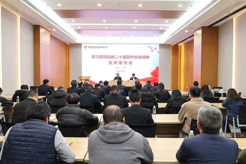 1月8日,化工集团党委副书记、董事、副总经理张小军到胜帮科技就深入贯彻党的二十届四中全会精神作专题宣讲。公司领导班子成员、中层副职及以上管理人员及全体党员参加,陕西分公司设分会场同步参会。宣讲会由公司党委书记、董事长李昊主持。