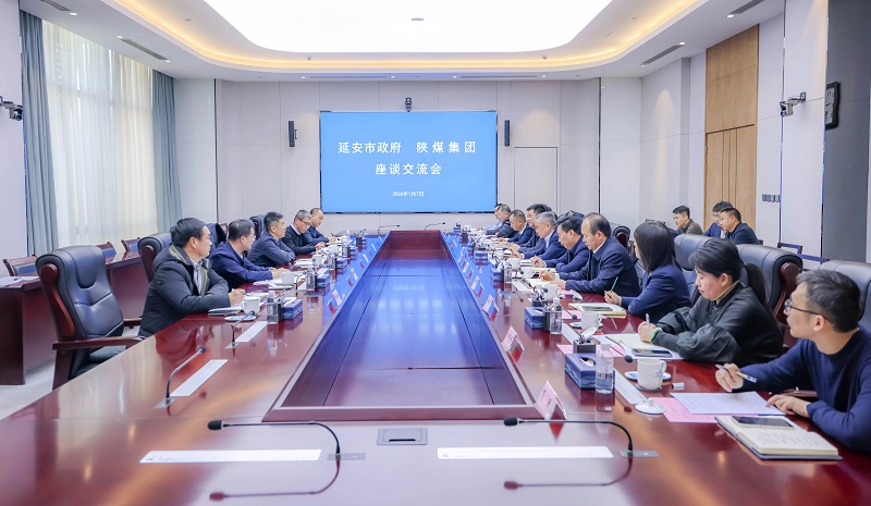 1月7日,延安市委常委、副市长祁锁锋一行到陕煤集团,与陕煤集团党委委员、副总经理袁广金座谈。双方围绕新能源开发、煤电项目推进等工作进行深入交流。